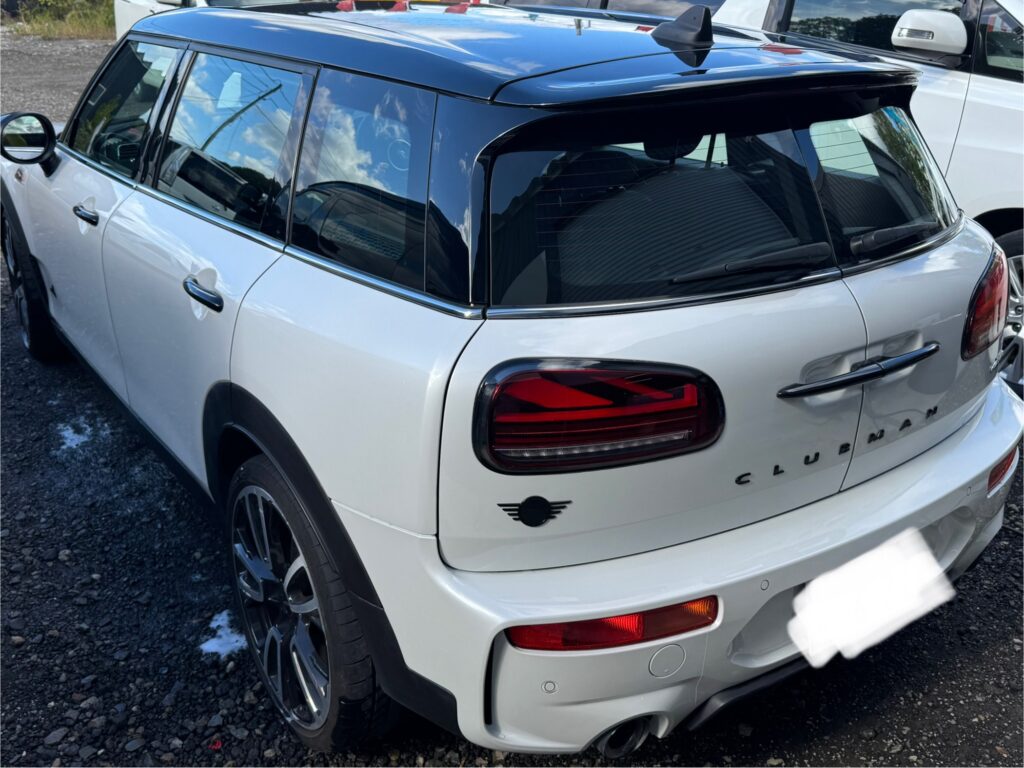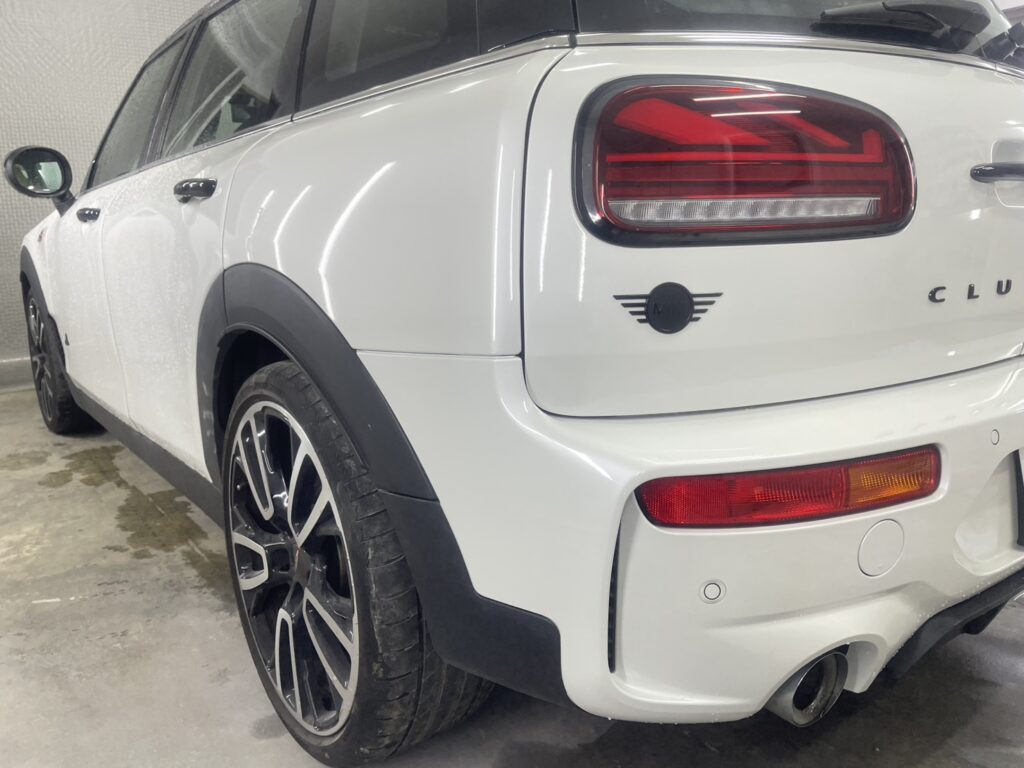 We repaired dents on the MINI Clubman John Cooper Works quarter panel and trunk, as well as scratches on the bumper.
