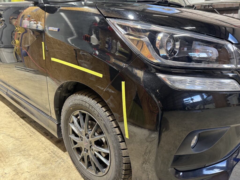 フロントバンパー・フェンダー・ドアの傷修理 Suzuki Solio Bandit MA36S Insurance repair: Repaired scratches on the bumper, fender, and door. 保険を利用した修理... -