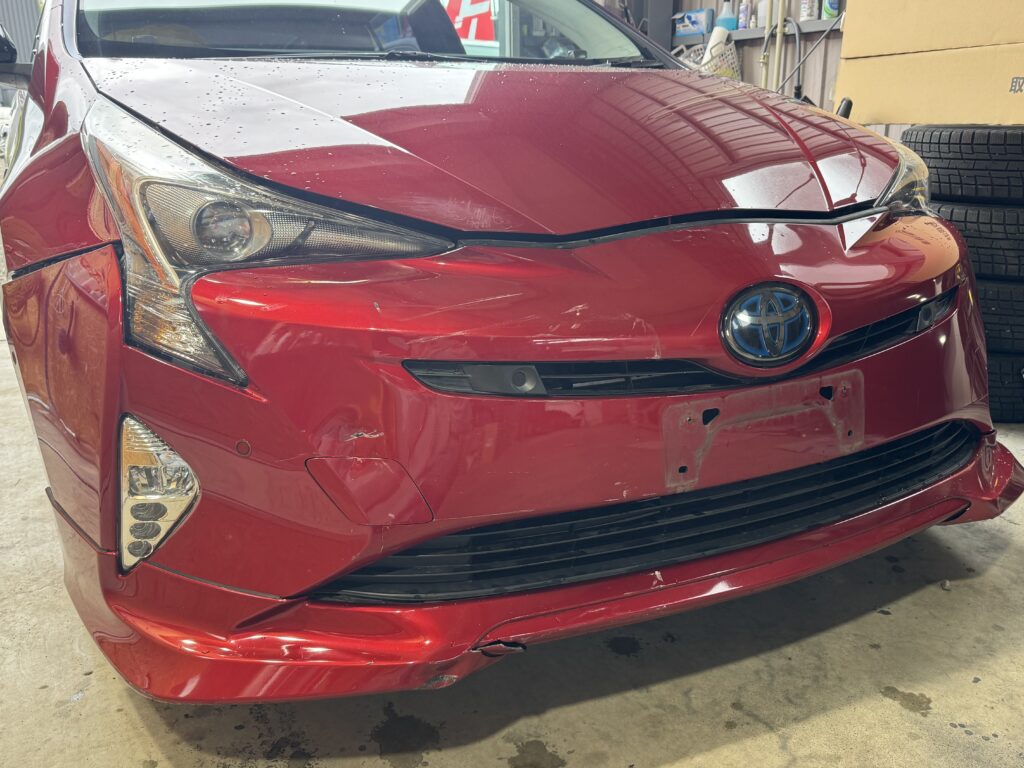 ボンネットのキズ、フロントバンパー・エアロの割れ修理 Toyota Prius ZVW55 Repaired the hood, bumper, and aerodynamic parts. -